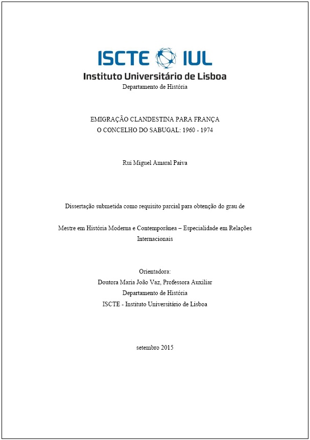Título Emigração Clandestina para França. O Concelho do Sabugal (1960–1974)