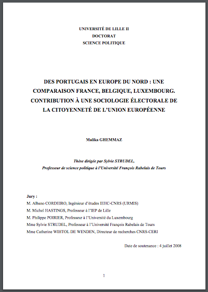 Abstract “This research aims at defining relation in the vote of the Portuguese nationals domiciling in Member States of Northern Europe. The citizenship of the europea Union is an opportunity to question electoral practices, political presentations and self-defining memberships of the Portugueses. Having introduced researches relating to Portuguese immigration in Northern Europe, we displayed the methodological choice of the monograph and international comparison (France, Belgium, Luxembourg). From our inquiry, we showed that the electoral behaviour of the Portugueses rests on contextual and individual determiners. Several models of participation were constructed to give an account of diversity and complicacy of the reports of the Portugueses in policy.”