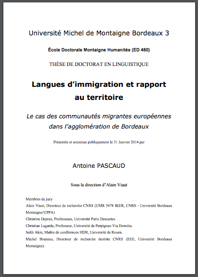 Título Langues d'immigration et rapport au territoire : le cas des communautés migrantes européennes dans l'agglomération de Bordeaux